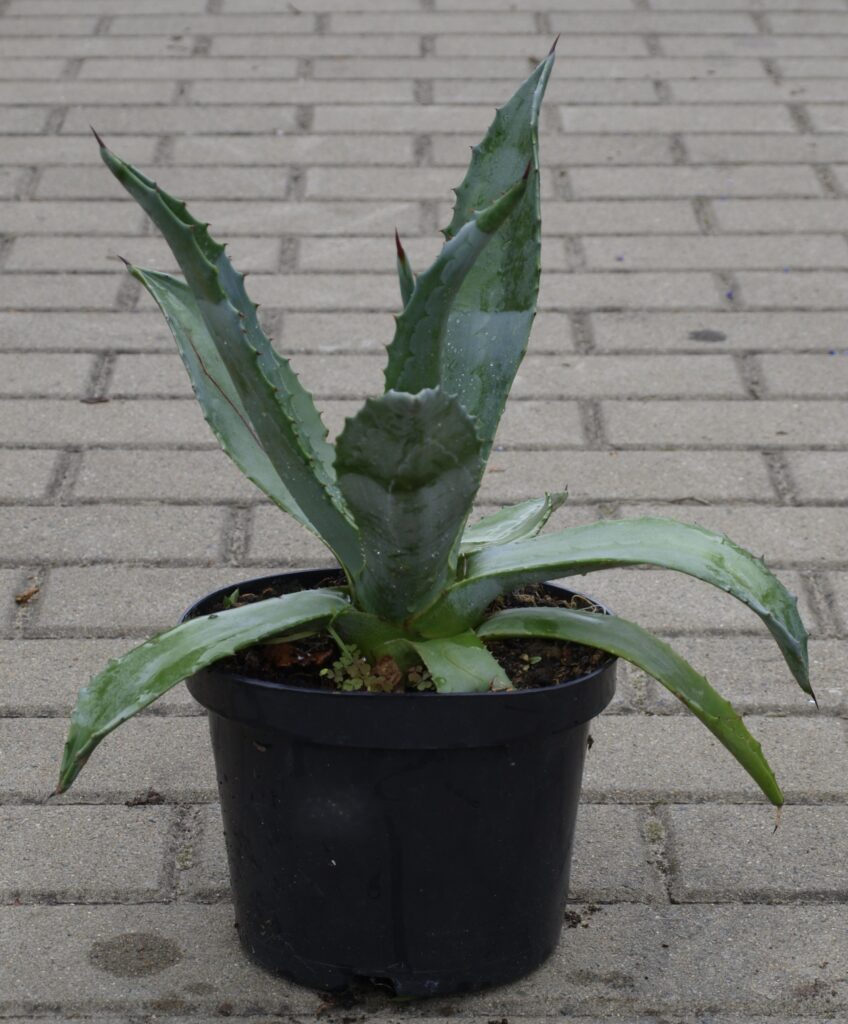 - wytwarza rozety z długich i ostro zakończonych, mięsistych, niebieskawych lub szarozielonych liści (pokrytych silnym nalotem woskowym). Liście te uzbrojone są także wzdłuż krawędzi.