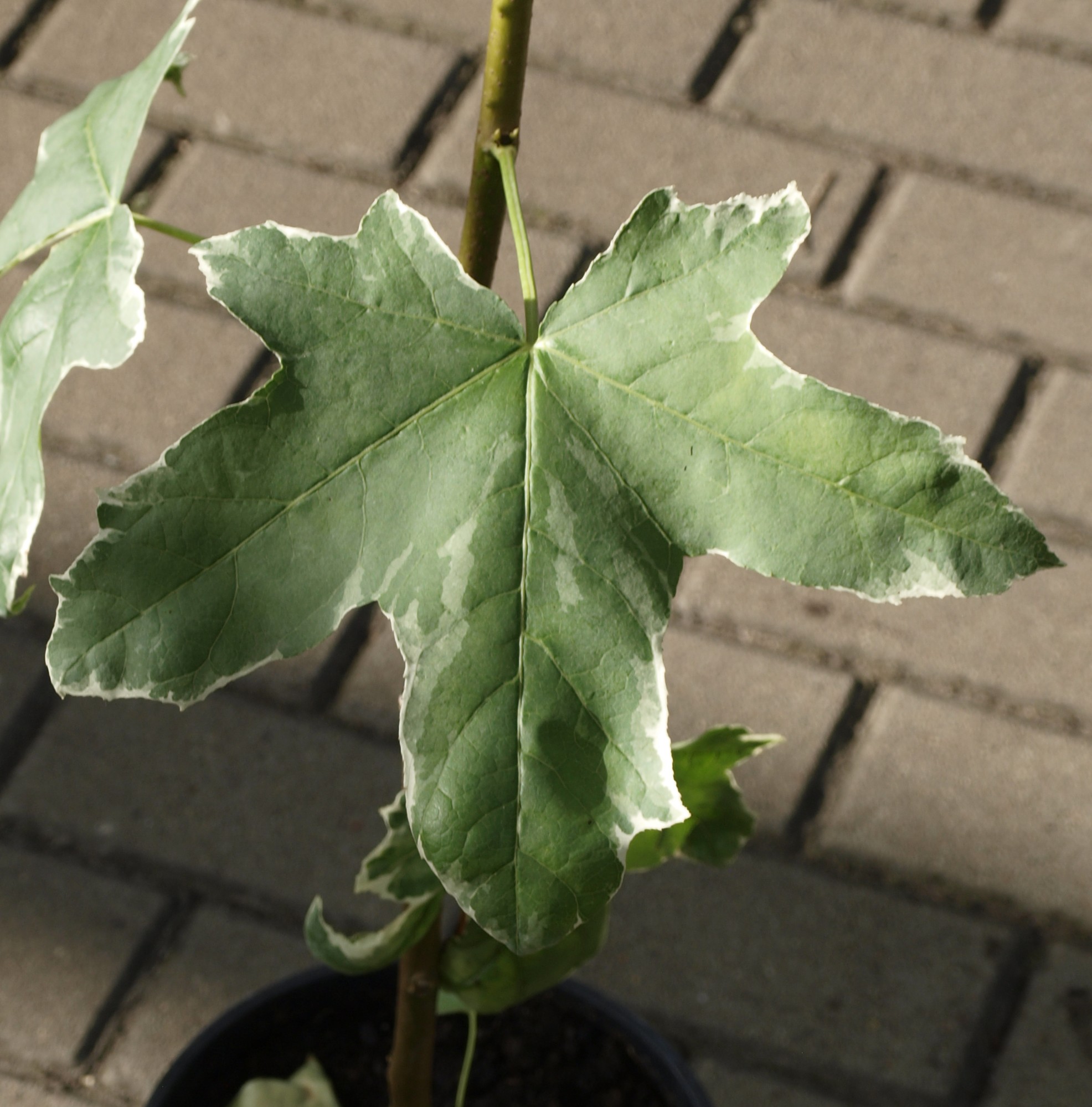 Ambrowiec amerykański 'Silver King' w doniczce zielono-biały liść